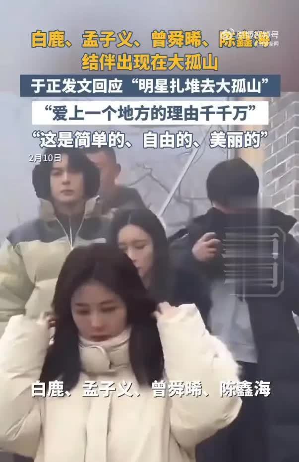 2日北方小年这天,白鹿、孟子义、曾舜晞、陈鑫海四人身着厚实羽绒服低调同游的画面,又为这股热潮添了一把火。他们参与当地围绕千年古树的祈福仪式,据推测可能是为新年祈愿,也或许是朋友间的聚会活动。而这,仅仅只是“大孤山明星观光团”的一小部分。